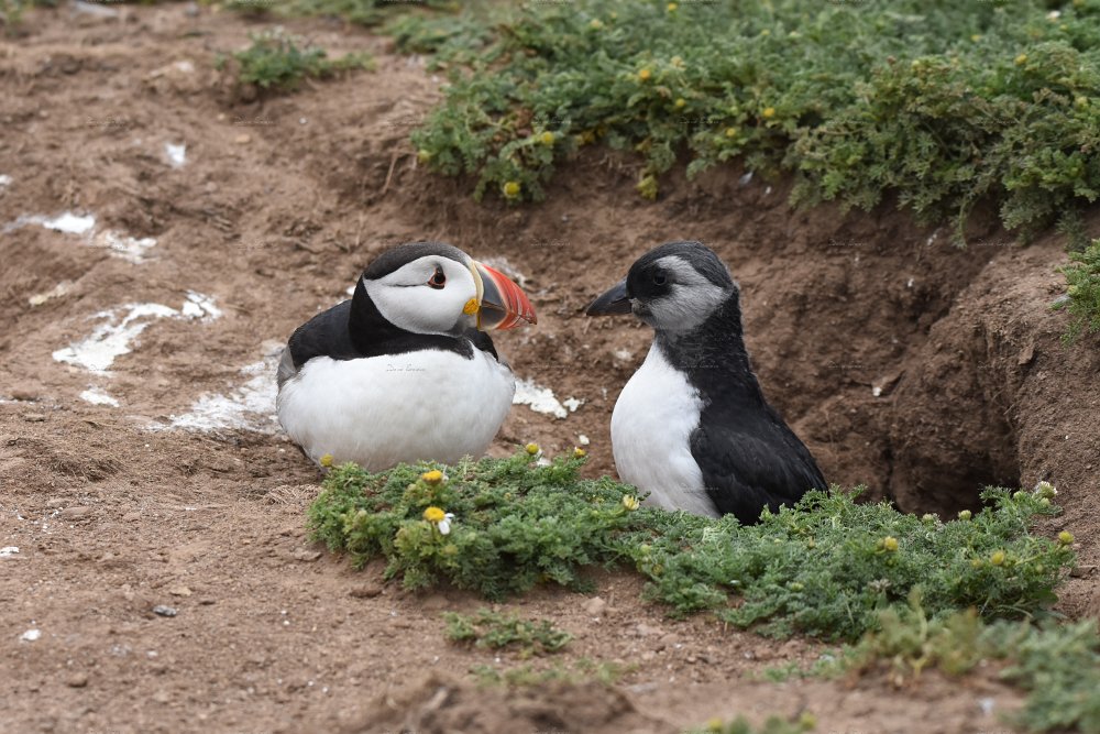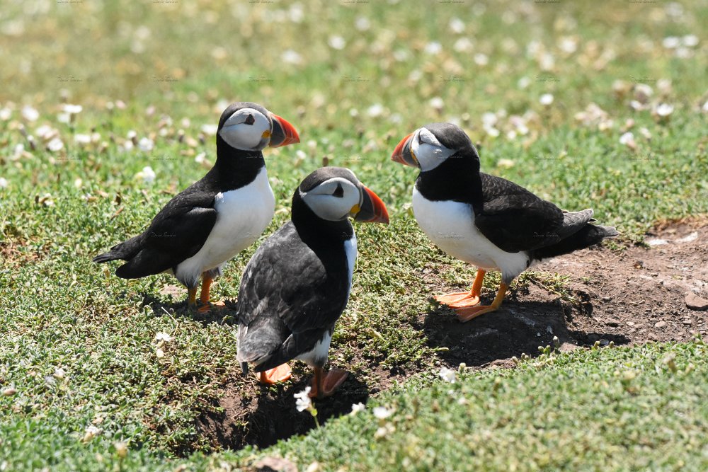 Puffin 11Look out Puffin on a warm summers day. Puffin 9Puffin carrying sand eels in it's beak to it's burrow. Puffin DisputeIt’s unusual to see such sociable birds fighting. Taken on a visit to Skomer island. Puffin 13Puffin hiding in dense bracken on Skomer island. No filters used. Puffin 15Three Puffins near a burrow - three's a crown! Puffing 4Puffling appears from burrow next to watching parent. Puffling 3Puffling having a look around as it's parent looks on. Puffin 10Puffin on the edge of a cliff. Robbins