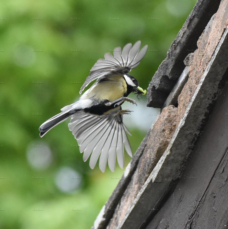 Great Tit 10Pair of great tits just after fledging. Great Tit 10Great tit bringing grubs for it's chicks in the garage roof. Long Tailed TitsBlue Tits